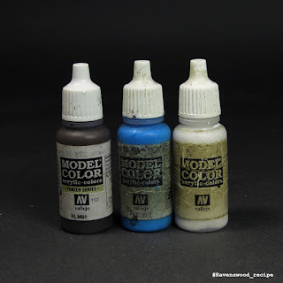 The scheme based on German cam. Black Brown, Andrea Blue and White (all Vallejo Model Color) Also I made additional glazes dark brown and purple in the shadows (Smokey Ink and Hexed Lichen - both from Vallejo Game Color) and painted here and there a reflection from the bronze elements (Brown and Dark Tangerine - both from Pacific88 art-color).